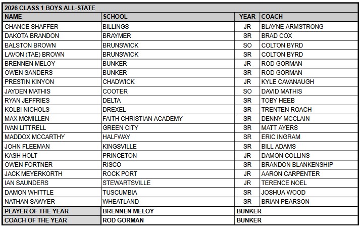 - All-State Classes 1-3 will be released on Wednesday after Show-Me Showdown I starting at 10:00am
